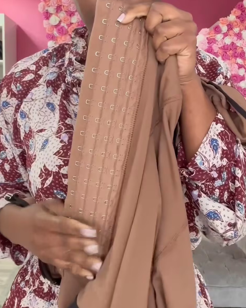 Esta faja con cierre de gancho proporciona una mayor compresión. Las correas de silicona antideslizantes en el interior del dobladillo de encaje evitan que la prenda moldeadora se mueva.