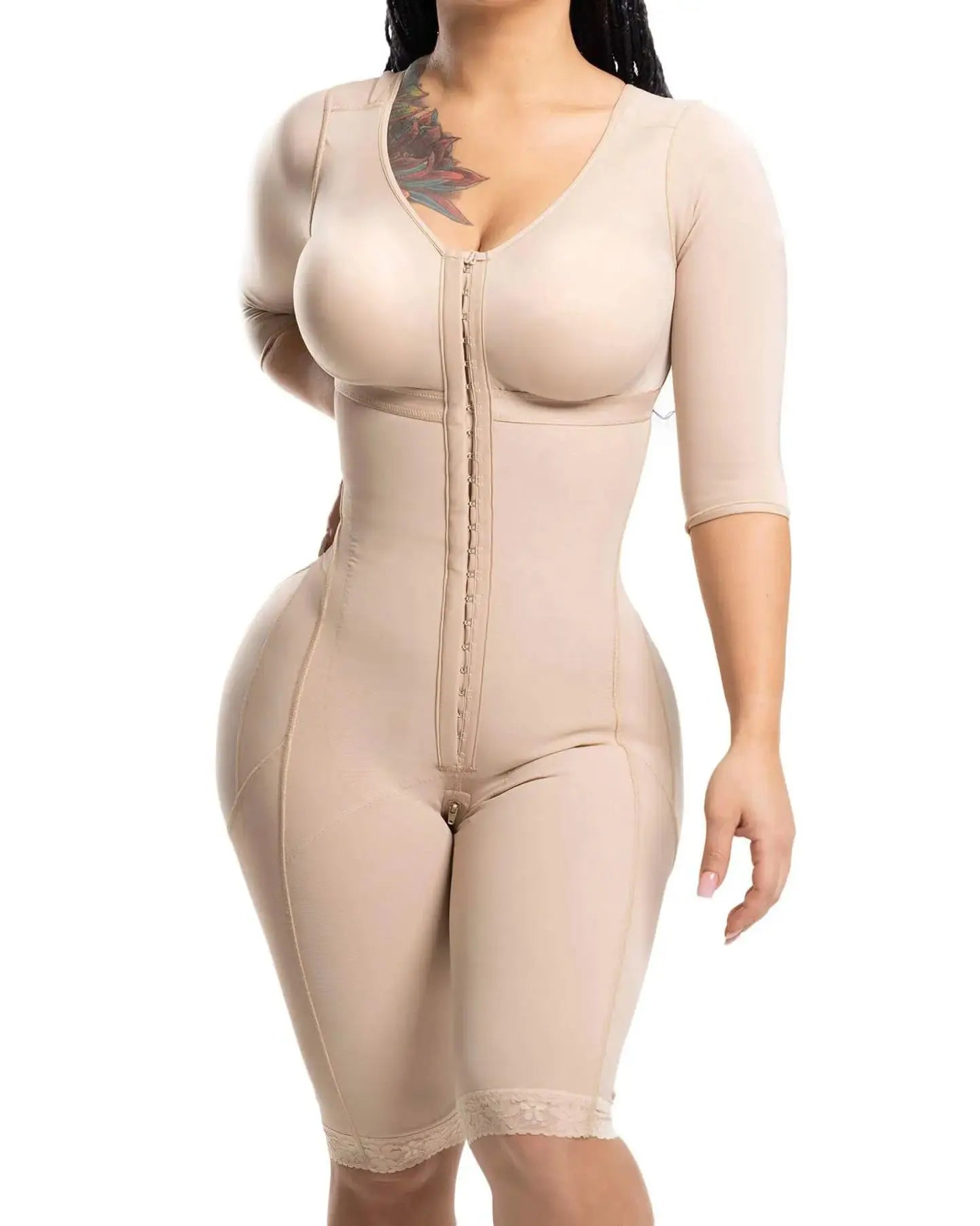 Este body de alta compresión ciñe tu cintura y levanta tus caderas, abraza tus brazos y da forma a tu abdomen para dar forma a tus glúteos y muslos.